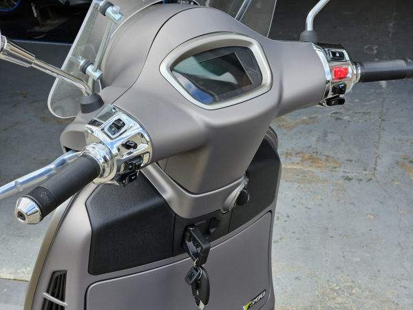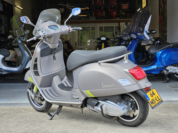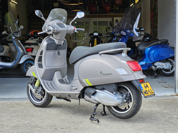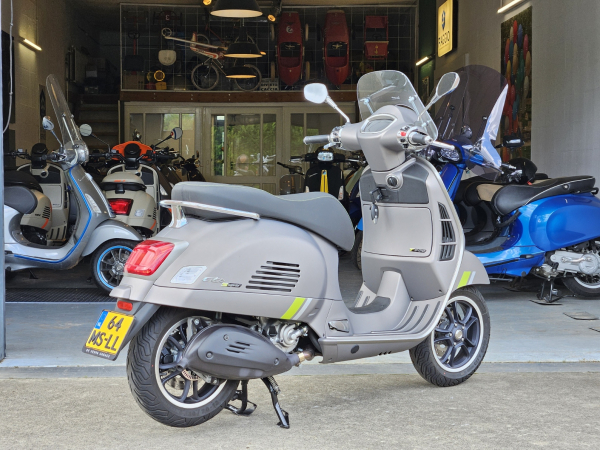 Vespa GTS SuperTech 300 HPE E5 in de chique kleur GRIGIO G22, deze Vespa hebben we voorzien van een laag windscherm en olie carter/koeler met kijkglas. De SuperTech is standaard voorzien van digitaal TFT scherm waar je op kan navigeren. Met je smartphone selecteer je een bestemming je kiest je favoriete route die met pijlen wordt getoont op het scherm. Erg leuke Vespa GTS 300 met weinig kilomters. Afkomstig van de eerste eigenaar.